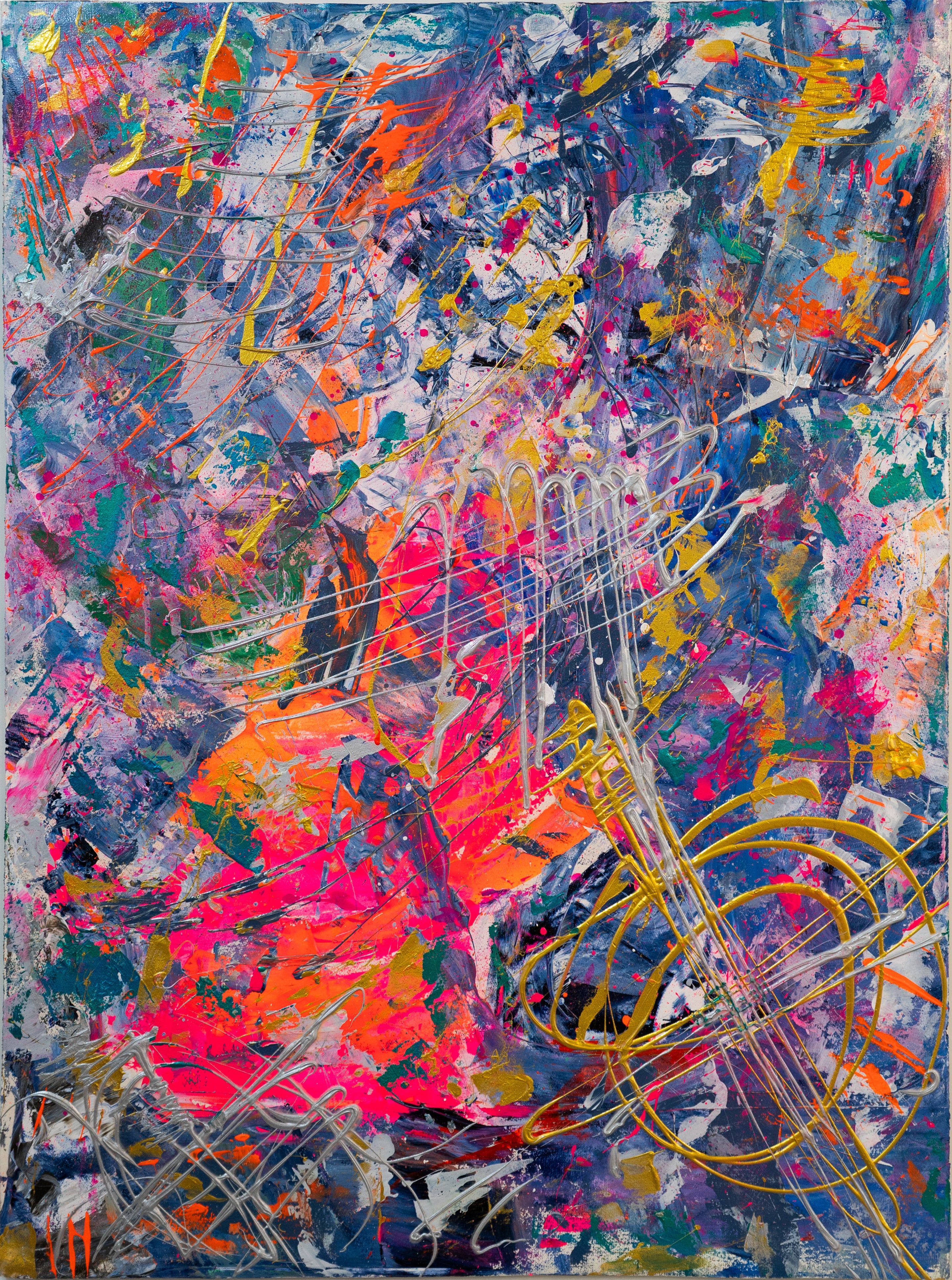 Seine überwiegend großformatigen Bilder stehen für ein ausdrucksstarke Abstraktion und die Fähigkeit, komplexe Emotionen und Gedanken auszudrücken. Großflächige Farbaufträge in verschiedenen Schichten erzeugen Tiefe und Textur. Darüber hinaus spielen Zufall und Unvorhersehbarkeit eine wichtige Rolle. Er setzt Farben und Materialien ein, die er vermutlich selbst nicht immer vollständig kontrolliert. Das Ziel sind einzigartige und unerwartete Effekte. Seine abstrakten Bilder haben eine beeindruckende Präsenz, die den Betrachter in ihren Bann zieht.